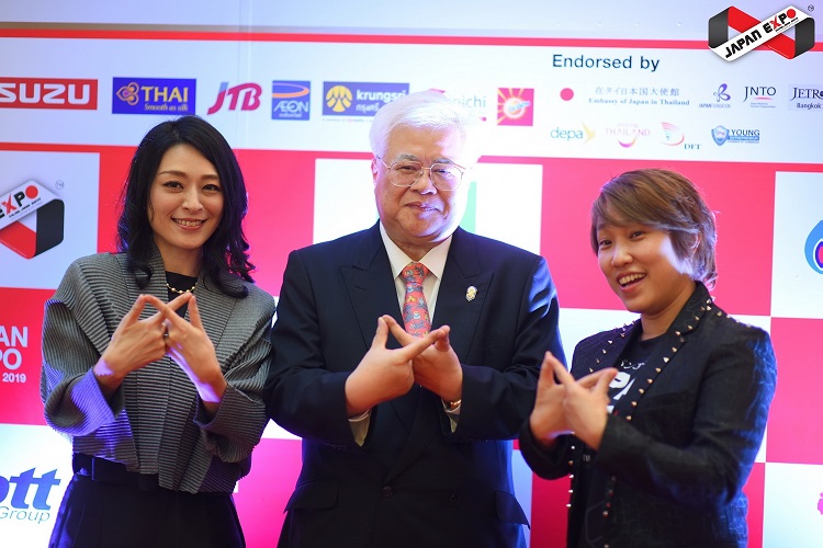 ตบท้ายด้วยการเชิญผู้จัดงานและเหล่าผู้สนับสนุนหลัก  บริษัท โออิชิ กรุ๊ป จำกัด (มหาชน), ร้านอาหารญี่ปุ่นยาโยอิ, บริษัท ปตท. จำกัด(มหาชน), บริษัท ตรีเพชรอีซูซุเซลส์ จำกัด, บริษัท การบินไทย จำกัด (มหาชน), บริษัท เจทีบี (ไทยแลนด์) จำกัด (มหาชน), บริษัท อิออนธนสินทรัพย์ จำกัด (มหาชน), ธนาคารกรุงศรีอยุธยา และ โรงเรียนสอนภาษาญี่ปุ่นไมนิจิ  ร่วมถ่ายรูปเป็นที่ระลึก พร้อมประกาศก้องความพร้อมในการจัดงาน Japan Expo Thailand2019 ตลอด 3 วันเต็ม!!!