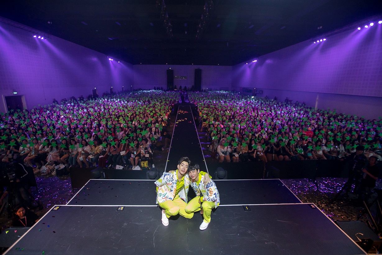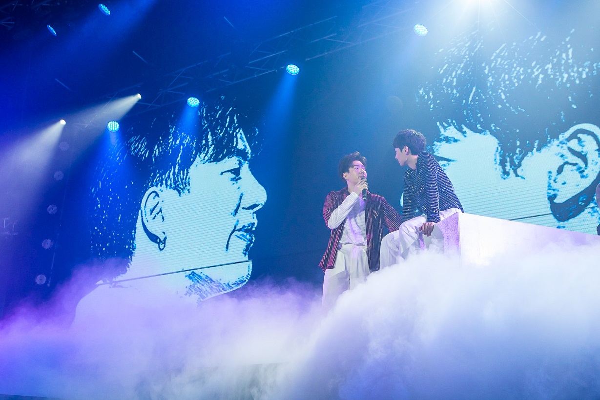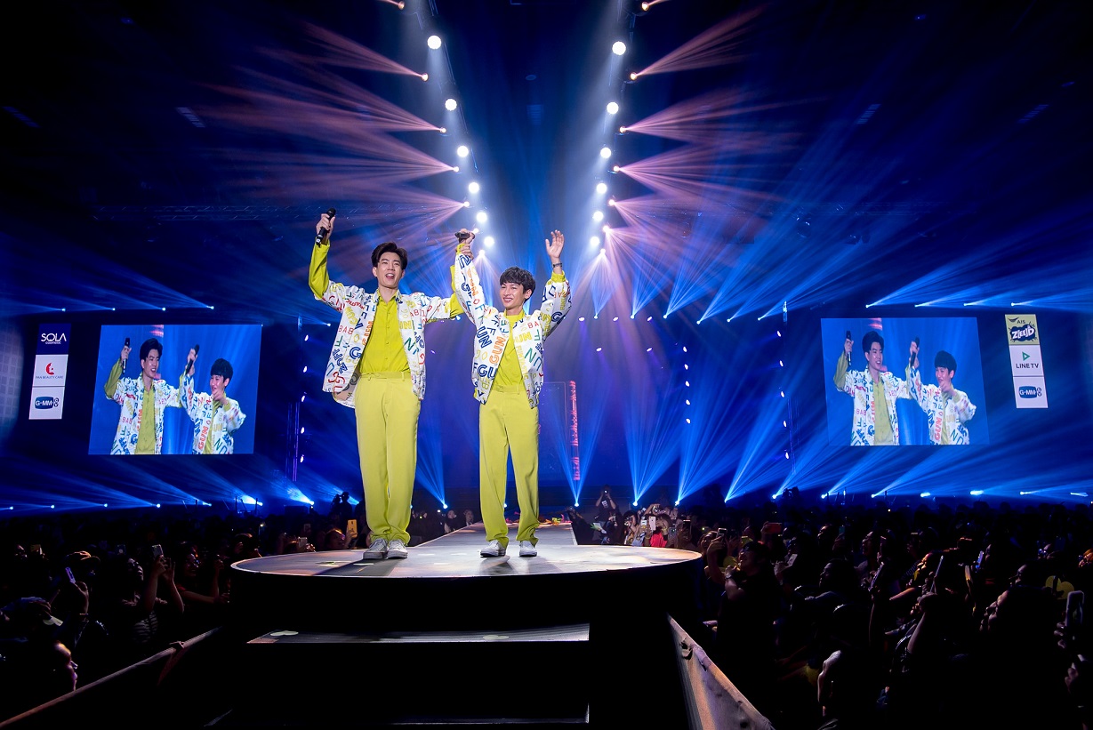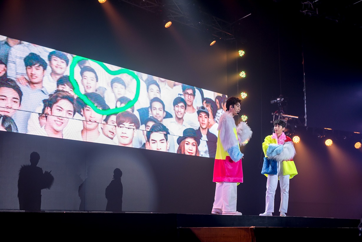 ประเดิมโชว์แรก “ออฟ-กัน” ปรากฏตัวขึ้นบนเวทีด้วยเพลงน่ารักๆ ชวนยิ้มตาม “L.O.V.E” และ “ห้ามทิ้ง” เรียกเสียงกรี๊ดจากแฟนๆ เบบี๋ดังสนั่นลั่นฮอลล์ ก่อนทักทายและพูดคุยถึงความสนุกที่จะเกิดขึ้นกับแฟนมีตติ้งครั้งแรกอย่างเป็นทางการในประเทศไทย จากนั้นมาอุ่นเครื่องต่อด้วยเพลง “พูดว่ารักในใจ” และ “เข้าใจใช่ไหม” ประกอบซีรีส์ “รุ่นพี่ Secret Love” เรื่องราวของปิ๊กโรม  ซึ่งเป็นซีรีส์เรื่องแรกที่ “ออฟ-กัน” เล่นคู่กัน และด้วยไลฟ์สไตล์ที่ตรงกัน เลยทำให้ทั้งคู่สนิทรู้ใจกันสุดๆ จนกลายเป็นจุดเริ่มต้นของความมหัศจรรย์ที่เกิดขึ้นในชีวิต ก่อนที่ทุกคนจะได้รำลึกถึงความฟินในซีรีส์ “ทฤษฎีจีบเธอ Theory of Love” ไปกับเพลง “พระเอกจำลอง” ในเวอร์ชั่นอะแคปเปล่า ที่ทั้งคู่ตั้งใจทำเป็นพิเศษเพื่อมอบให้กับเบบี๋ทุกคน เท่านั้นยังไม่พอยังมีเซอร์ไพรส์สุดเอ็กซ์คลูซีฟจากแขกรับเชิญ  “เกทสึโนวา” ศิลปินเจ้าของเพลง มาร่วมแจมบนเวทีอีกด้วย ทำเอาดีกรีความสนุกพีคยิ่งขึ้นไปอีก จากนั้นขอลุยเดี่ยวกับโชว์ที่เตรียมมาเซอร์ไพรส์แฟนๆ โดยเฉพาะ เริ่มที่ “กัน” กับเพลง “มีหัวใจแต่ไม่อยากรัก” ในโชว์ฮิปฮอปแดนซ์ให้เบบี๋ได้โยกตามกัน ด้าน “ออฟ” ก็ไม่น้อยหน้าหยิบเพลง “Cinderella” พร้อมโชว์ลีลาการเล่นเบสสุดเท่ ทำเอาเบบี๋ใจละลายกันเป็นแถว จากนั้นก็ถึงช่วงเวลาที่ทุกคนรอคอย งานนี้ได้ 2 พิธีกรอารมณ์ดี “ก๊อตจิ-อลิส” แถมยังมีแนนนี่สุดฮา “เจนนี่ ปาหนัน” ที่มานั่งดูโชว์ขึ้น