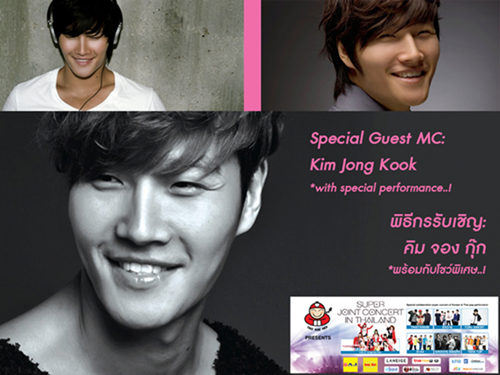 นอกจากข่าวดียืนยันการจัดคอนเสิร์ตแล้ว ยังมีข่าวดีเด้งที่สองอีก นั่นคือได้มีการเชิญแขกรับเชิญพิเศษ คิม จอง กุ๊ก แห่งรายการทีวีเกาหลีชื่อดัง “Running Man” มาเสริมทัพความสนุกในบทบาทของพิธีกรรับเชิญแถมงานนี้ คิม จง กุ๊กยังเตรียมโชว์พิเศษสุดๆ มาเซอร์ไพรส์แฟนๆ บนเวที ชนิดที่ทุกคนต้องคาดไม่ถึงอย่างแน่นอน ร่วมลุ้น และเป็นกำลังใจให้กับเค้าพร้อมๆ กันได้ที่งาน Super Joint Concert in Thailand!!