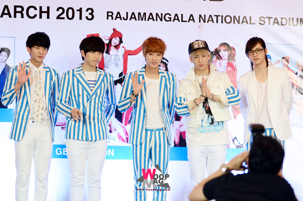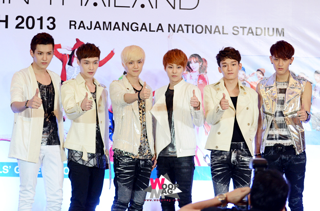 เฉิน (EXO-M) : ก่อนอื่นก็ต้องขอขอบคุณที่ให้พวกเราได้เข้าร่วมคอนเสิร์ตในครั้งนี้ ปกติ EXO-M จะทำกิจกรรมที่ประเทศจีน แต่ว่าคราวนี้ได้มาแสดงที่ประเทศไทยพร้อมกับศิลปินเกาหลีคนอื่นๆ ก็รู้สึกดีใจครับ และพรุ่งนี้พวกเราจะแสดงให้เต็มที่เลยครับ