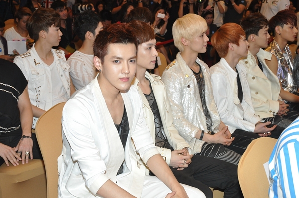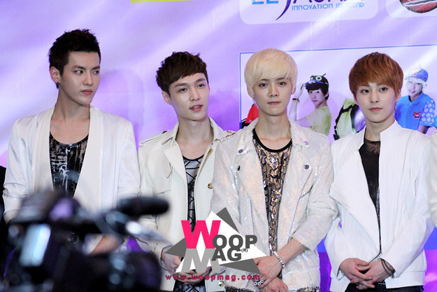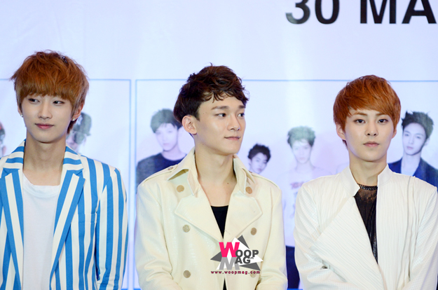 ซิ่วหมิน (EXO-M) : เนื่องจากพวกผมเป็นชาวเกาหลีเลยได้ขึ้นมาเป็นตัวแทนในการให้สัมภาษณ์ในครั้งนี้ แล้วก็ขอเป็นตัวแทนเพื่อนๆ ชาวจีนที่นั่งอยู่ข้างล่างด้วยพวกผมขอขอบคุณทุกๆ คนที่ให้การต้อนรับพวกเราเป็นอย่างดีรวมทั้งแฟนคลับทุกคนด้วยโดยเฉพาะแฟนคลับที่สนามบิน พวกผมต้องขอโทษด้วยที่ไม่ได้เจอ