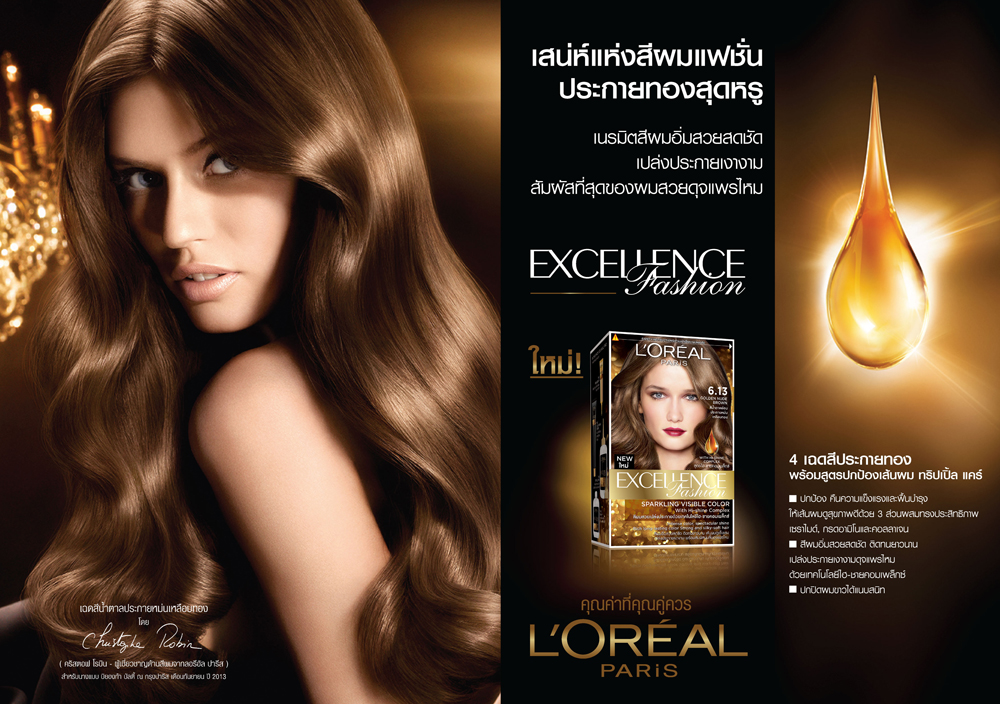 ลอรีอัล ปารีสแบรนด์ความงามชั้นนำจากยุโรปขอแนะนำผลิตภัณฑ์เปลี่ยนสีผมที่คัดสรรพิเศษสำหรับสาวเอเชียที่มีความเป็นเอกลักษณ์ทั้งด้านสีผิวและสีของดวงตาลอรีอัล ปารีส เอกซ์เซลเล้นซ์ แฟชั่น (L’Oreal Paris Excellence Fashion)มาพร้อมกับเทคโนโลยีไฮ-ชายคอมเพล็กซ์(Hi-Shine Complex)ที่ช่วยให้สีผมอิ่มสวยสดชัด โดดเด่นเป็นประกาย ติดทนยาวนาน ไม่ทำให้ผมเสียเพราะมีเทคโนโลยีทริปเปิ้ล-แคร์ (Triple Care) ส่วนผสมทรงประสิทธิภาพ3 ชนิด ได้แก่ เซราไมด์, กรดอามิโน และคอลลาเจน ที่ช่วยปกป้อง บำรุง และฟื้นบำรุงให้เส้นผมดูสุขภาพดีมีชีวิตชีวานุ่มลื่นดุจแพรไหม พร้อมช่วยปกปิดผมขาวได้แนบสนิทมีให้เลือกถึง 4เฉดสี