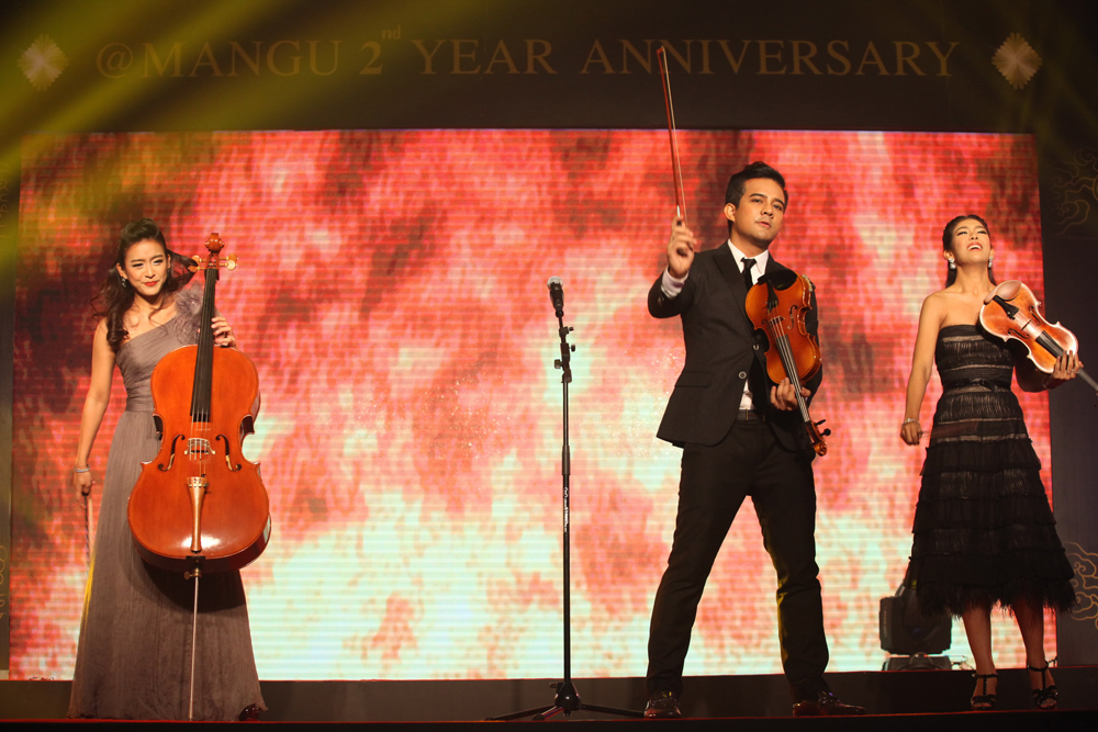 โดยในงานยังมีเหล่าดาราดังที่ โด่งดังในประเทศจีนมาร่วมงาน อาทิ ไมค์ พิรัชต์ นิธิไพศาลกุล ที่ควงคู่ จิ้นสาว ออม สุชาร์ มานะยิ่ง มารับรางวัล “Thailand Headlines Person of the year 2013-2014” และยังมีสาวหล่อขวัญใจสาวจีน ติ๊นา ศุภนาฎ จิตตลีลา ตามด้วยสาวเซ็กซี่ เจมี่ บูเฮอร์, มด ณปภัช วัฒนากมลวุฒิ และหนุ่ม พิช วัชญ์วิสิฐ หิรัญวงษ์กุล มาร่วมแสดงความยินดีในโอกาสที่ นิตยสารจีน @ManGu ครบรอบ 2ปี อีกทั้งยังได้วง วีทรีโอ สามศรีพี่น้องมาร่ วมบรรเลงเพลงกล่อมผู้ร่วมงานก่ อนไปฟังเสียงเพราะๆ จากสองดีว่า นิว-จิ๋ว บนเวที ที่งานนี้ทั้งคู่ยังมาร่วมรั บรางวัลพร้อมคนดั งจากหลากหลายวงการตบเท้าร่ วมงานอีกคับคั่ง อาทิ คุณสุวัจน์ ลิปตพัลลภ ประธานอำนวยการ THAI FIGHT มวยไทย The World Unrivalled Fight, คุณจีจี้ (หลุ่ย) แซ่กั๊ว กรรมการผู้จัดการบริษัท เจียระไน เอนเตอร์เทนเมนท์ จำกัด, คุณเจนนี โซล (Gennie Soul) ผู้จัดการใหญ่ Sina International (ผู้แทนจาก เชน่า เว๋ยป๋อ โซเชียลมีเดียที่ใหญ่ที่สุ ดของจีน, ดร.ชวนี ทองโรจน์ ผู้ช่วยรัฐมนตรีว่ าการกระทรวงการท่องเที่ยวและกี ฬา, คุณจู เหว่ย ตง กงสุลใหญ่สาธารณรัฐประชาชนจี นประจำประเทศไทย และอีกมากมาย