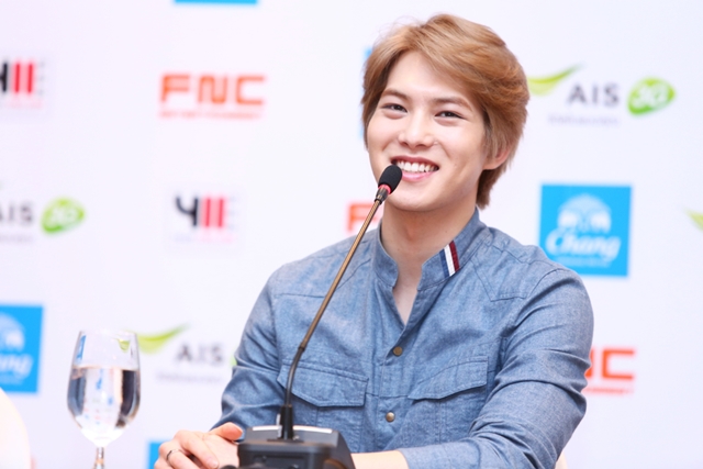 จงชิน: ได้รับการต้อนรับอย่างดีทุกประเทศที่ไปเลยครับ ไม่ได้มาไทยตั้ง 1 ปีแล้ว ก็คิดอยู่ก็เหมือนคิดอยู่ว่าทุกคนจะเตรียมตัวกันยังไงบ้างเพื่อ คอนเสิร์ตครั้งนี้ ผมหวังว่าทุกคนจะเตรียมมาสนุกด้วยกันอย่างเต็มที่นะครับ