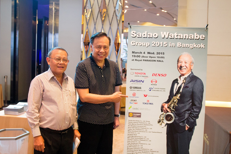 คอเพลงแจ๊สคึกคักแห่ตบเท้าเข้าชมคอนเสิร์ตของสุดยอดบรมครูแจ๊สระดับแถวหน้าของโลกอย่าง ซาดาโอะ วาตานาเบ้ ในงานคอนเสิร์ต  “SADAO WATANABE Group 2015 in Bangkok”     (ซาดาโอะ วาทานาเบ กรุ๊ป 2015 อิน แบงคอก) ช่วงค่ำวันที่ 4 มีนาคม2558 ณ รอยัลพารากอนฮอลล์ งานนี้แฟนเพลงตัวจริงของซาดาโอะ อย่าง โก้ มิสเตอร์แซกแมน, ติ๊กชีโร่, มิ้นท์ อรรถวดี จิรมณีกุล  และ ดร.พิจิตต รัตตกุล   ไม่พลาดที่จะมาร่วมชมคอนเสิร์ตในครั้งนี้เช่นกัน