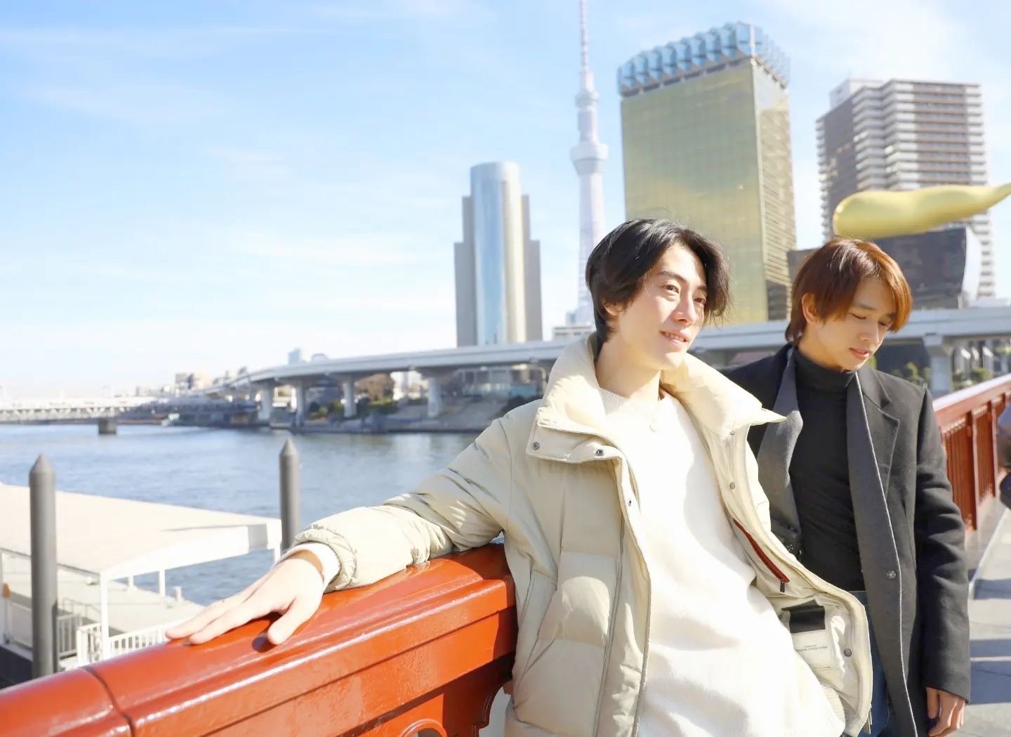 “ฟลุ้ค – ณธัช” เผยว่า “ดีใจครับ ดีใจมาก คือรู้จักกันผ่านทางโซเชี่ยลมา 2-3 ปีได้ ตอนไปครั้งแรกก็ไม่ได้ตั้งใจว่าจะได้เจอเขา เพราะเราก็ไม่รู้ว่าเขาจะยุ่งหรือสะดวกหรือเปล่า แต่พอเราไปแล้วลงรูปปกติ เขาก็เหมือนคอมเมนต์มาถามว่าเราอยู่โตเกียวหรอ เราก็ตอบเขาไปว่า ‘ใช่’ เขาก็ตอบกลับมาว่าอยากเจอ ก็เลยคุยกันนัดหมายกัน เป็นการเจอกันครั้งแรกเลยครับ ดีใจและก็แอบตื่นเต้นนิดหน่อยครับ ก็ไม่เชิงว่าเขาเป็นแฟนซีรีส์หรอกครับ คือจุดเริ่มต้นมันเริ่มจากที่เราชื่นชอบ ไลฟ์สไตล์ของเขา ด้วยความที่เขาเป็นนายแบบ เรามองว่าเขาดูเท่ห์ คูลดี เลยกดติดตามไว้ตามไลฟ์สไตล์เขา แต่เขาก็ดันกดติดตามกลับ จากนั้นก็มีกดถูกใจ และคอมเมนต์กันบ้างไปมาครับ เค้าเป็นคนดังที่ญี่ปุ่นเป็นนายแบบที่ญี่ปุ่น คือครั้งแรกที่เราเห็นเพราะเห็นมีคนไทยแชร์กันผ่านโซเชียลนี้แหละครับ ไม่คิดว่าจะได้มีโอกาสได้มารู้จักกัน เรานัดเจอกันที่วัด ที่เป็นสถานที่ท่องเที่ยวครับ เพราะเราตั้งใจจะไปเที่ยวอยู่แล้ว แล้วอยู่ใกล้บ้านเขาด้วย เลยนัดเจอกัน กินกาแฟ พูดคุย และถ่ายรูปเล่นกันครับ จะมีคู่จิ้นต่างแดนเพิ่มไหม เรียกว่าเป็นเพื่อนต่างแดนดีกว่าครับ ฟลุ้คว่ามันเป็นความสัมพันธ์ที่ดีมากกว่า จากคนแปลกหน้าในโซเชียล กลายมาเป็นคนที่ติดตามกัน รู้จักกันผ่านโซเชียลมีเดีย จนสุดท้ายได้มาเจอกันจริงๆ ฟลุ้คก็หวังว่าแฟนๆ จะแฮปปี้และให้การสนับสนุนคุณรินทาโรด้วย เค้ามีแฟนๆชาวไทยหลายคนที่ชื่นชอบ ซึ่งเราก็อยากจะบอกว่า ส่วนตัวเขาเป็นคน Nice น่ารักมากๆครับ ไม่แปลกใจที่จะมีแฟนๆชาวไทยชื่นชอบเค้า มีชวนเค้ามาเที่ยวเมืองไทยครับ เค้าก็บอกอยากมาครับ ถ้ามีโอกาสเราก็คงได้เป็นเจ้าบ้านที่ดี พาเขาเที่ยวแน่นอนครับ เป็นมิตรภาพที่ดีในการไปญี่ปุ่นครั้งนี้เลยครับ มันแฮปปี้มากๆครับ ดีใจที่ได้เจอกับเขา ได้ทำความรู้จักกันครับ”