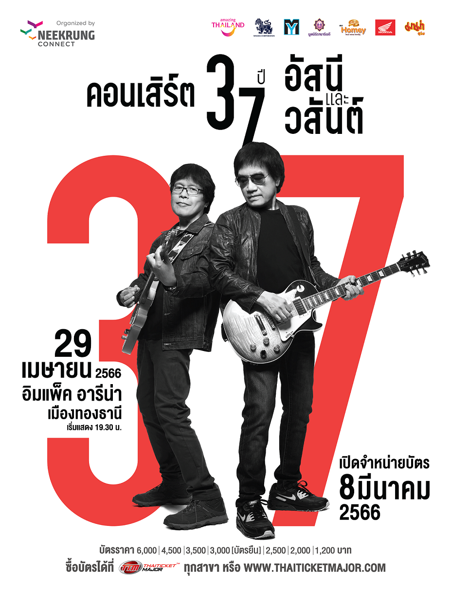 มาร่วมรำลึกความทรงจำกับบทเพลง จิ๊กโก๋อกหัก กับเพลงรักโดน ๆ ใน คอนเสิร์ต 37 ปี อัสนีและวสันต์ ในวันเสาร์ที่ 29 เมษายน 2566 อิมแพค อารีน่า เมืองทองธานี