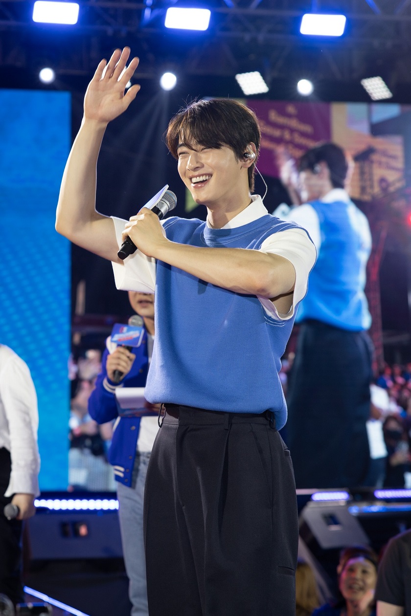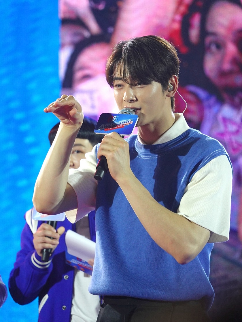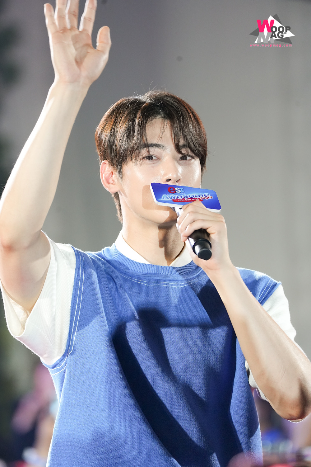 งานนี้ได้ดีเจนุ้ย ธนวัฒน์ เป็นพิธีกร แค่ซีนเปิดตัวก็ดูยิ่งใหญ่โดนใจแฟนคลับ “ชาอึนอู” ที่ปรากฏตัวในลุค