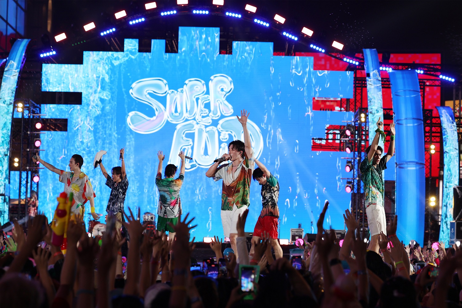 โดยเหล่าศิลปินกว่า 100 ชีวิตที่ตบเท้ามาระเบิดความมันส์ ทวีคูณความร้อนไปพร้อมกับการเล่นน้ำสงกรานต์ทั้ง 3 วัน ที่เปียกทั้งตัว แฮปปี้ทั้งใจ ออกสตาร์ทวันแรกไม่มีแผ่วนำทีมโดย TRINITY, JAYLERR, KIN, ALALA, PRETZELLE, Berry Berry และกลุ่มศิลปินบอยแบนด์จากเกาหลีใต้ 8TURN พักเหนื่อยข้ามวันมันส์กันต่อในวันที่ 2 กับ ALLY, 4MIX, RAMASUON x NEWBLOOD, ACTIONTHA, WHAWHA, HatoBito, THI-O & TUTOR, bXd, DVI และ bamm ปิดท้ายสงกรานต์ในซัมเมอร์ นี้ด้วย LAZ1, MATCHA, PERSES, TIGGER, TYTAN, MXFRUIT, THE7, HYBS และ PROXIE ที่ศิลปินทุกคนปล่อยหมดแม็กซ์ แถมมันส์ขั้นสุดไปอีกเมื่อได้เล่นน้ำบนเวทีไปพร้อมกับแฟนคลับที่ใช้ปืนฉีดน้ำส่งความสนุกไปด้วยกัน เรียกได้ว่ายิ่งสาดน้ำ ยิ่งโชว์มันส์ เป็นอีกสีสันที่สัมผัสได้ในงาน SUPERFLUID (ซูเปอร์ฟลูอิด) ไม่ใช่แค่โชว์ที่จัดเต็มเพื่องานนี้ แต่คอสตูมของศิลปินแต่ละคนดีไซน์และ Mix Match มาแบบสุดจึ้ง Colorful ขั้นสุดให้เข้ากับงานซัมเมอร์