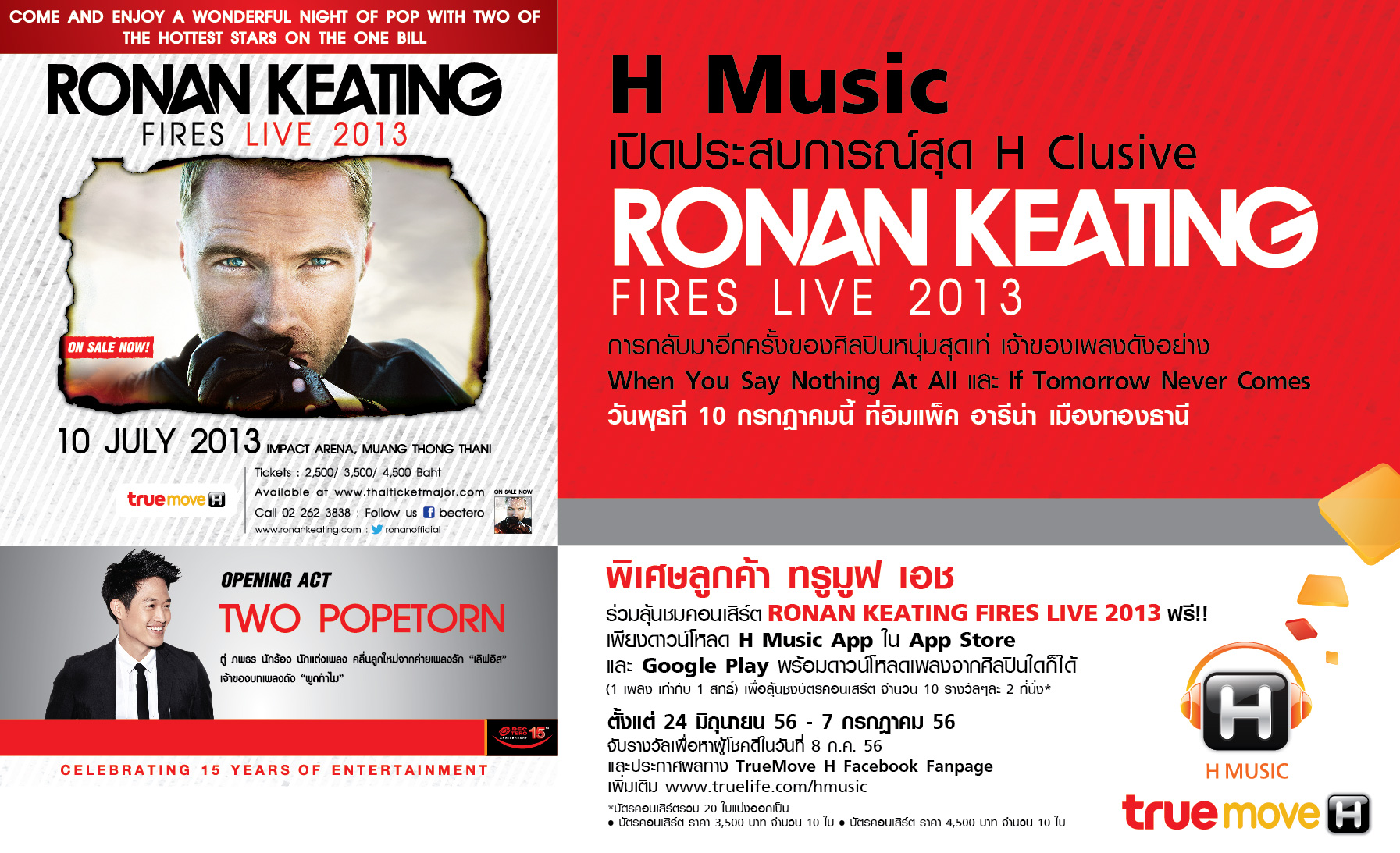 H Music ชวนลุ้นตั๋วชมคอนเสิร์ต Ronan Keating
