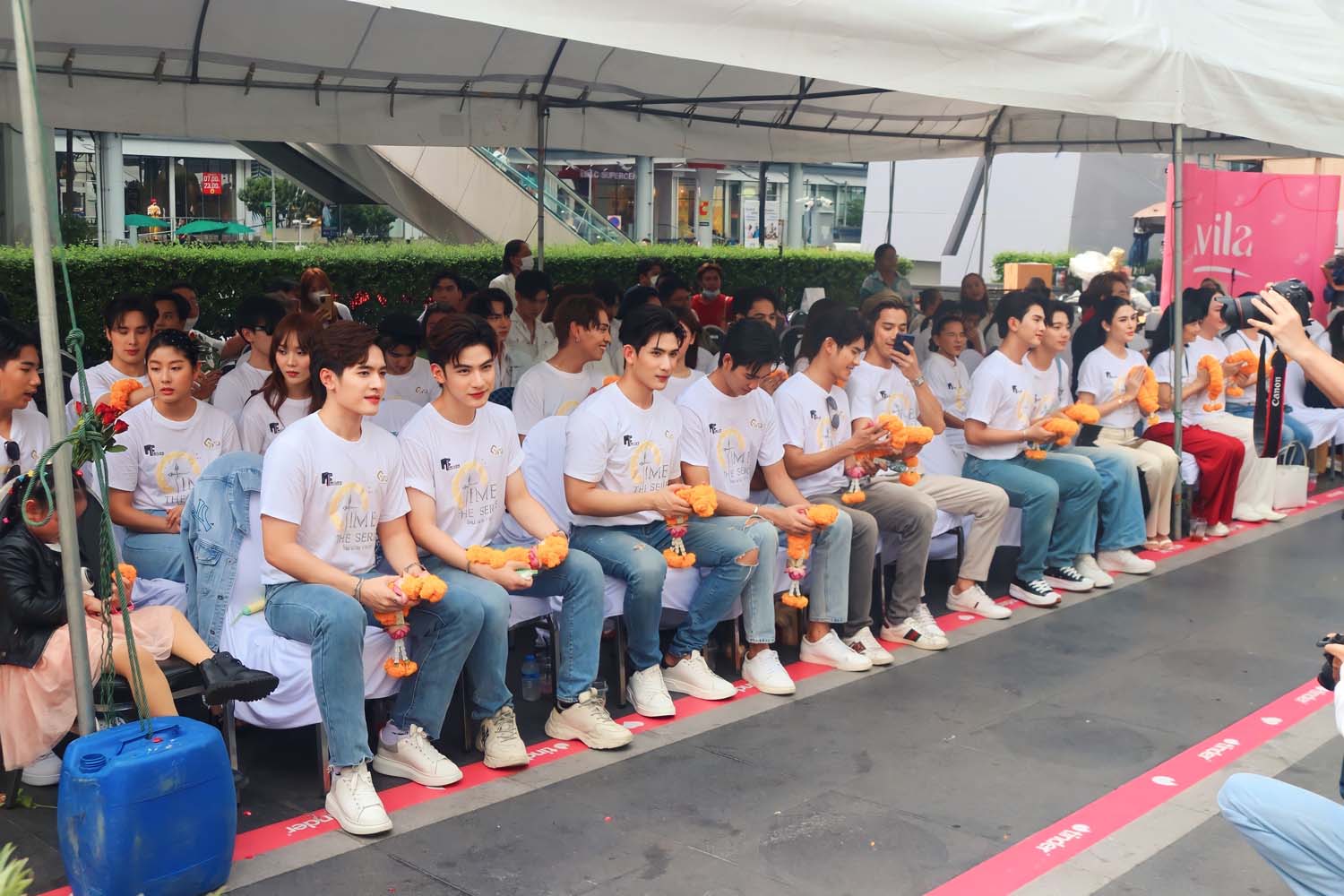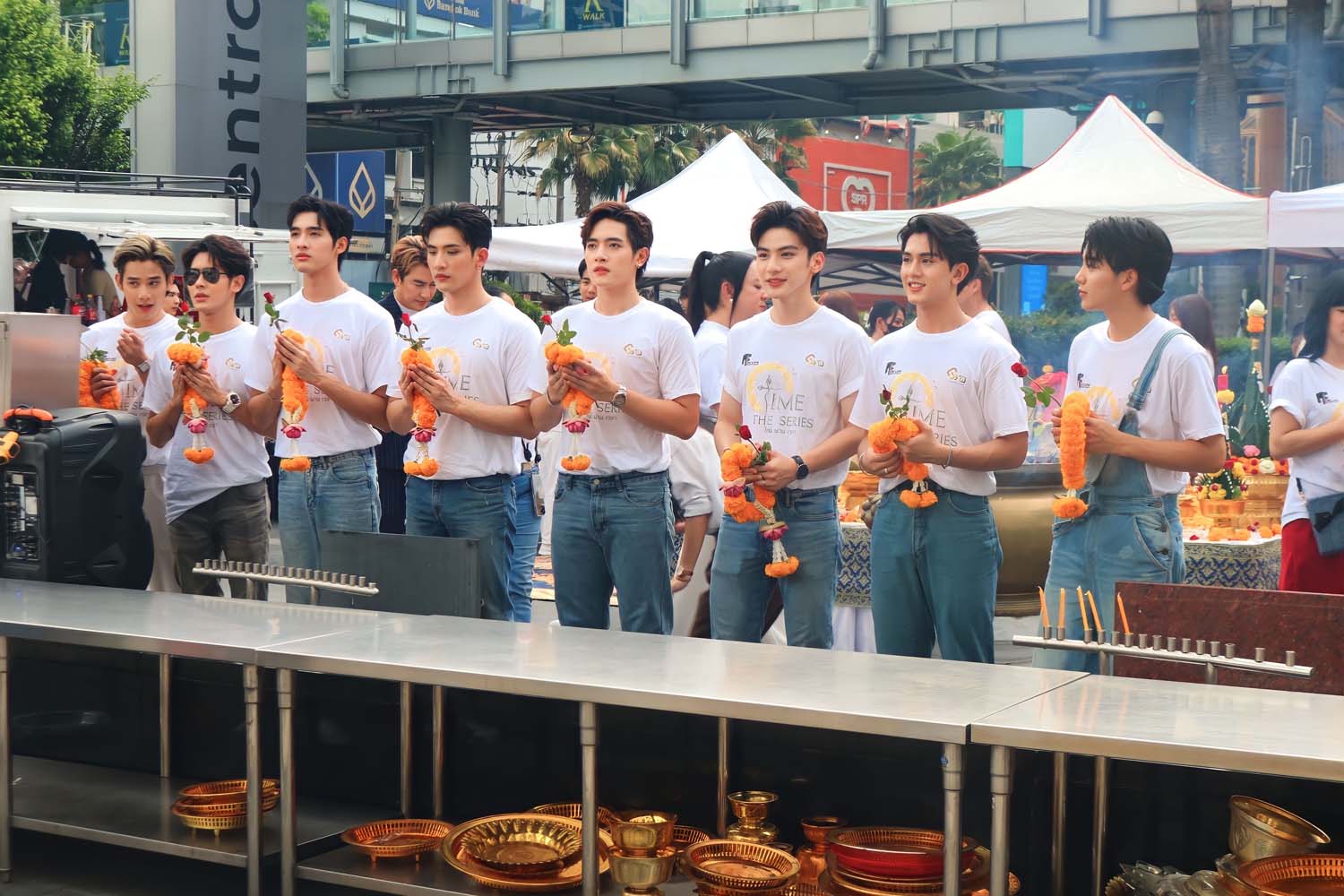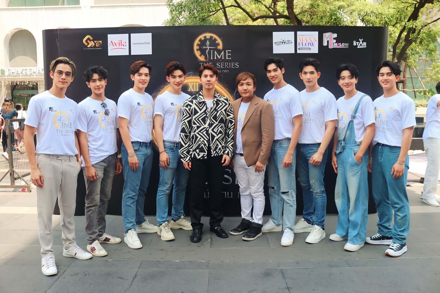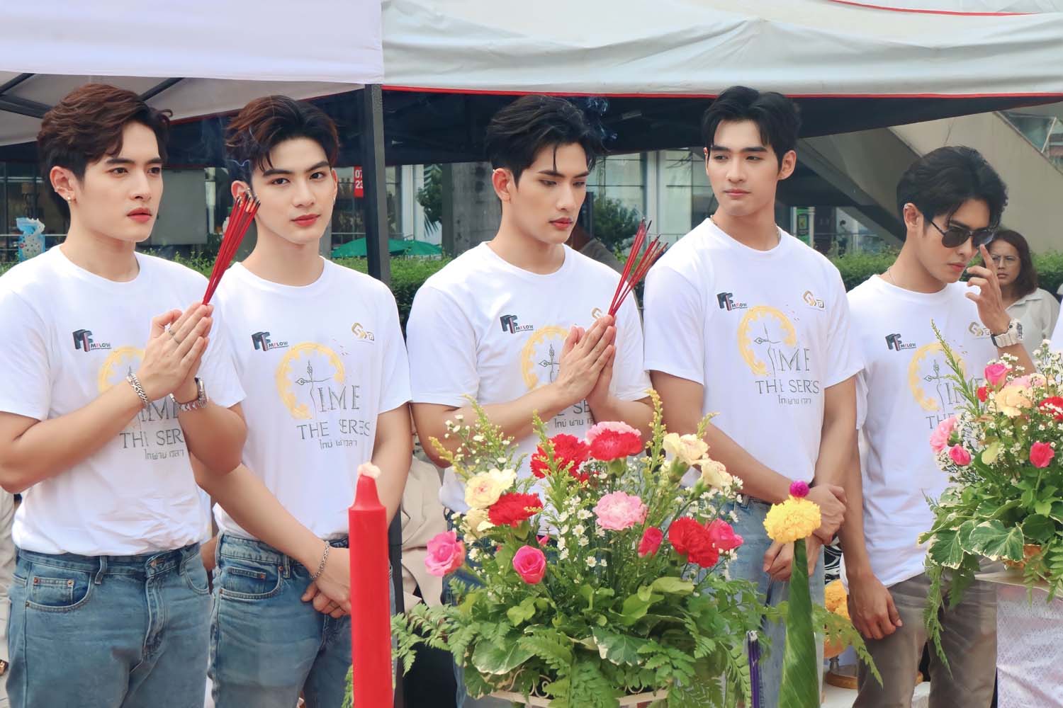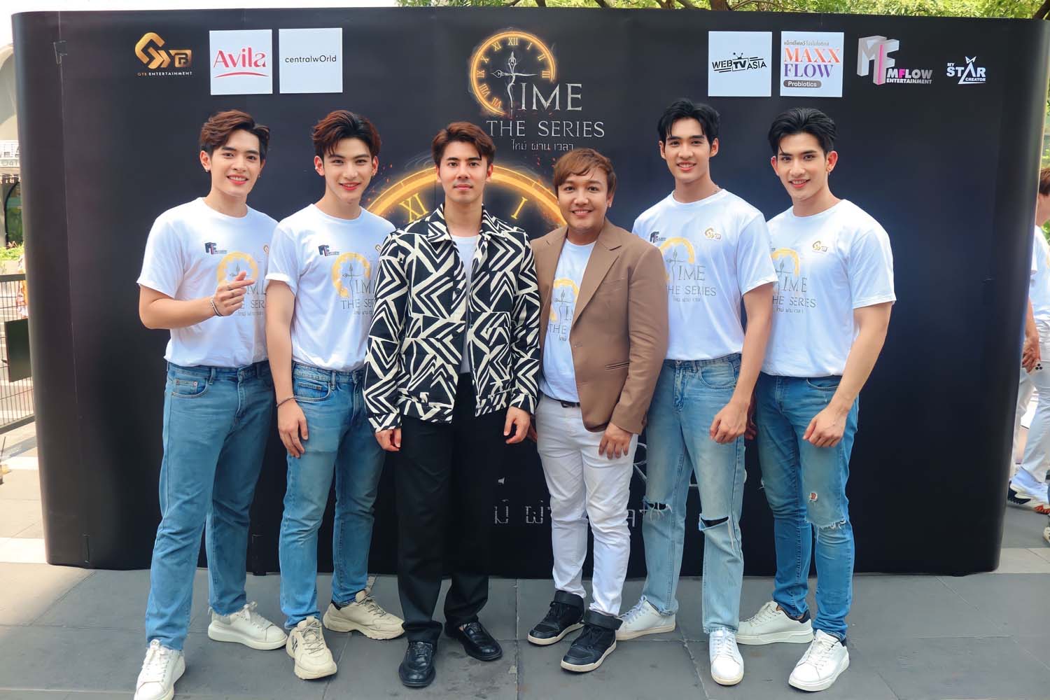 เปิดฤกษ์ดีบวงสรวงซีรีส์ “ไทม์ผ่านเวลา” (Time The Series) ไปเป็นที่เรียบร้อย ผลงานซีรีส์วายเรื่องใหม่แนวแอคชั่น ดราม่า ของ 2 ผู้จัดคนเก่ง โดย “เติร์ก-คหบดี กัลย์จาฤก” ผู้บริหารบริษัท เอ็มโฟลว์เอ็นเตอร์เทนเม้นท์ จำกัด (M Flow Entertainment) จับมือกับ “บอล-สมเกียรติ ทวีสิทธิ์” ผู้บริหารบริษัท จีวายบี เอ็นเตอร์เทนเม้นท์ จำกัด “GYB Entertainment” นำทีมทัพนักแสดงคุณภาพ “แคมป์-คุณาธิป ตระการจันทร์, จิมมี่-จิรเมธ จู, บาส-การัณย์ ทองพรรณ, เพชร-ทัตธน เชิดชูมาลัยกิจ, เบส-วรพล ตะเภาพงษ์, อาร์ท-สิริราช สอนสุทธ์, แจม-พีรภัทร จารุทัศน์โรจน์, อะตอม-ปิยวัฒน์ กุลพันธ์กัลยากร, โก้-ดร.ธีรศักดิ์ พันธุจริยา, ปิงปอง-สะแกวัลย์ ยงใจยุทธ,จิ๊บ - ดุสิตา อนุชิตชาญชัย, เจสสิก้า สมปอง เอสพินเนอร์ ฯลฯ” พร้อมด้วยผู้บริหารสาวคนเก่ง “มิ้นท์-วรัญชรักษ์ พรปวีณ์วรกุล” จาก M Flow Entertainment และผู้กำกับฯ “เต่า-ประภาส ภุมมะดิลก” เข้าร่วมพิธีอย่างคับคั่ง ณ ลานพระพิฆเนศ ศูนย์การค้าเซ็นทรัลเวิลด์ เมื่อวันอังคารที่ 9 พฤษภาคม พร้อมเตรียมเปิดกล้องถ่ายทำซีรีส์ในวันที่ 10 พฤษภาคมนี้ โดยจะออนแอร์ให้แฟนๆ ได้ลุ้นไปกับเรื่องราวของเด็กหนุ่มที่สามารถย้อนเวลากลับไปแก้ไขเรื่องที่ผิดพลาดในอดีต ด้วยนาฬิกาผ่านเวลา เร็วๆ นี้
