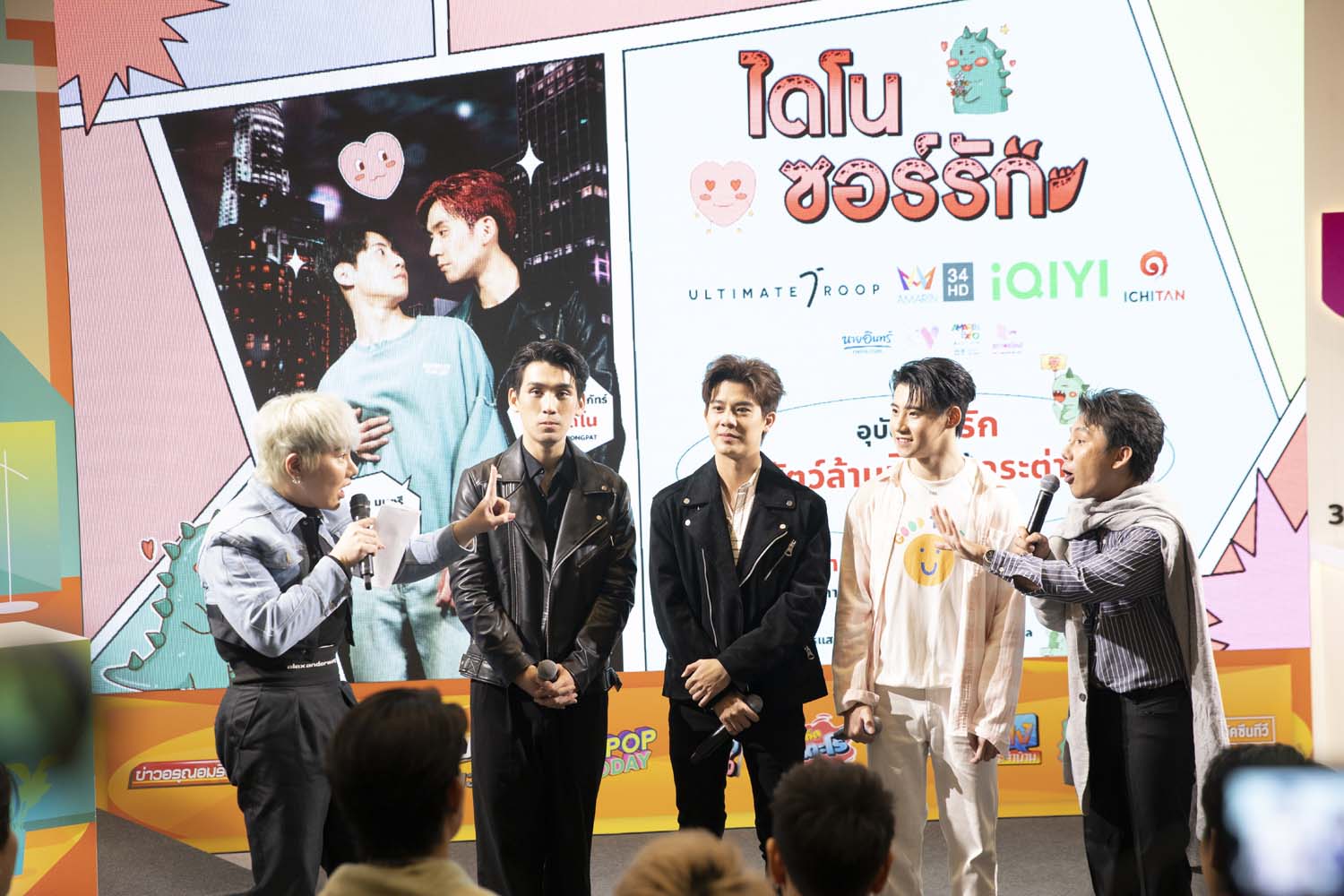 เปิดตัวกันคึกคักสุดๆ สำหรับซีรีส์เรื่อง “ไดโนซอร์รัก” ของค่าย “Ultimate Troop” ซึ่งนำโดย คู่จิ้นเคมีใหม่ เปปเปอร์ – พงศ์ภัทร์ อุณหพิพัฒน์พงศ์ กับ กะก้อง – มนตรี ภัทรจิตร์ภิญโญ พร้อมทัพนักแสดงสายวายอาทิ ออมสิน – ธกฤต ภัทรธนาวรกิจ, บอส – สุทธิภัทร ทวงทอง, มอส – กิตติ์รวี เจียงธนาโรจน์, พีค – ณัฐชนน ไชยพงศ์ผาติ, ปูนปั้น – ปภาวิชญ์ งามบุญยรักษ์, พีค – ภีมพล พาณิชย์ธำรง, ต้น – ศรัณญ์ อนันตะเศรษฐกูล, ปาร์ค – ภานุภัทร อโนมกิติ, แซมมี่ วาบิซาบิ, เพชร – ชนะภูมิ เถรว่อง พร้อมด้วยสองผู้กำกับ สนุ๊ก จุ๊กกรู๊ (นิพิฐพนธ์ เมืองสีนุ่น) และ ต้นน้ำ – เปี่ยมชล ดำรงสุนทรชัย ที่มาเล่าเบื้องหลังการทำงาน เผยอย่าง Trailer ความสนุกสนานให้แฟนๆ ได้ดูกันเป็นครั้งแรก นอกจากนี้ยังมีแขกคนพิเศษมาร่วมงาน พี-พีรวิชญ์ พลอยนำพล, ไตเติ้ล-ธนธร เสนางคนิกร, เสือ-กฤษณะพงศ์ ศรีภัททิยานนท์, คอปเตอร์-นันทพงศ์ วงศ์สกุลยง, โอม – ธนกฤต เจียมจรรยา, ตู้เซฟ -กฤตวัฒน์ สุวานิชย์ เป็นต้น ที่ต่างก็แท็คทีมกันมาร่วมสร้างสีสันและเชิญชวนแฟนๆ ให้ติดตามชมซีรีส์ “ไดโนซอร์รัก” ที่จะออกอากาศตอนแรกวันอาทิตย์ที่ 25 มิถุนายนนี้ ทาง อมรินทร์ทีวี เอชดี ช่อง 34 เวลา 22.30 น. กันอย่างคึกคัก ณ งาน Amarin Expo 2023 ศูนย์การประชุมแห่งชาติสิริกิติ์