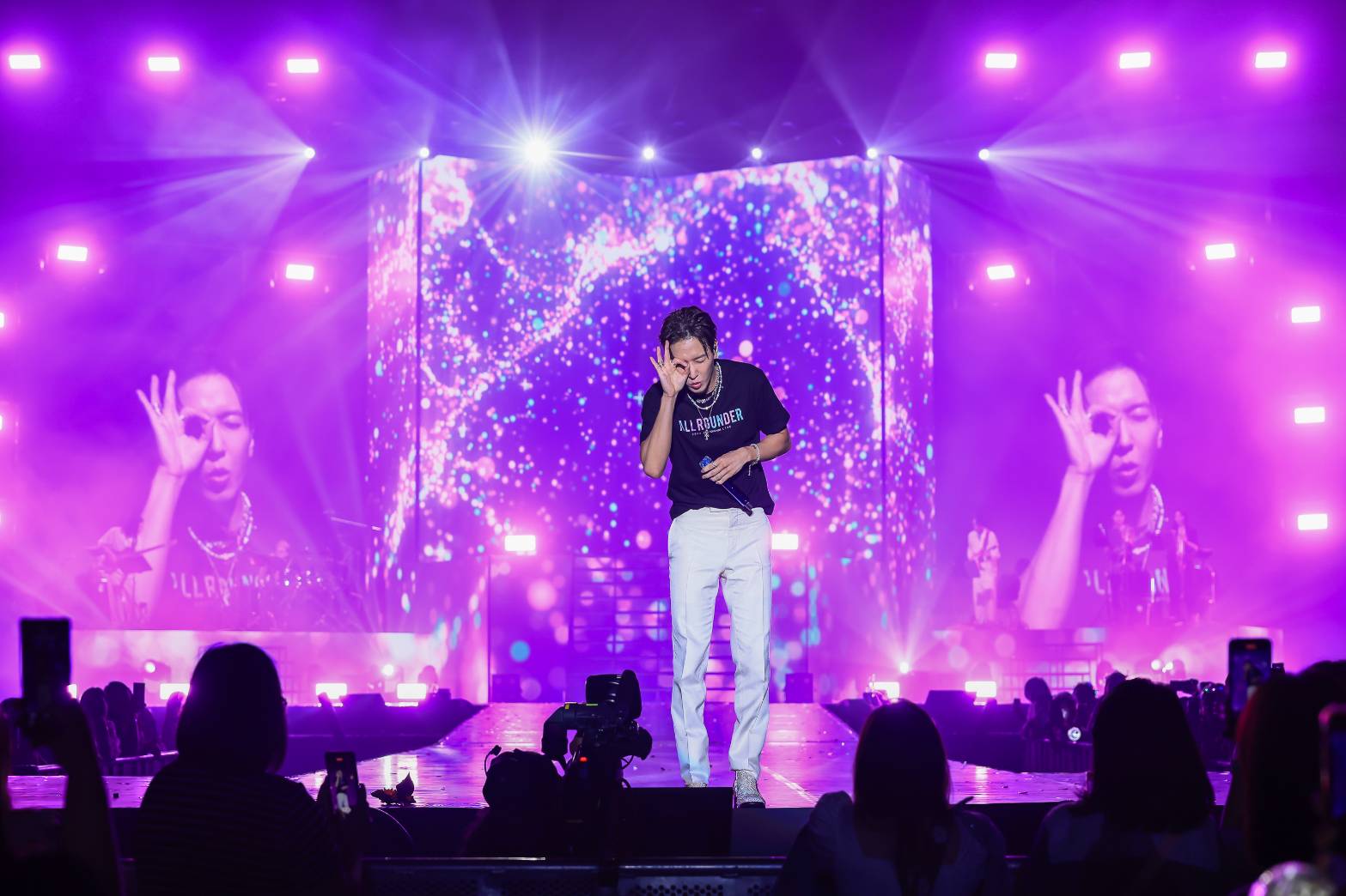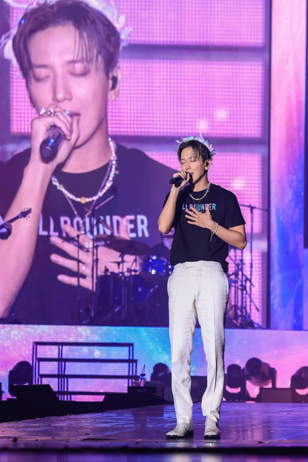 เปิดตัว “ยงฮวา” ด้วยชุดสีดำ โค้ทสีขาว พร้อมกีตาร์คู่ใจ ปรากฏตัวต่อหน้าแฟนๆ ทำเอาเสียงกรี๊ดสนั่นฮอลล์กั นเลยทีเดียว เริ่มต้นความมันส์ด้วย Jellyfish, Checkmate, Energy สามเพลงติดกันแบบมันส์ๆ จากนั่นหนุ่ม “ยงฮวา” ก็ได้ทักทายแฟนๆ “ไม่เจอกันนานเลยนะครับ ผมคิดถึงทุกคนมากเลย คิดถึงผมไหมครับ” พร้อมทั้งยังยอดคำหวานให้กั บแฟนๆ โดยการบอกว่า ประเทศไทย เป็นอันดับหนึ่งในใจ ของการทัวร์คอนเสิร์ตในครั้งนี้ จากนั้น “ยงฮวา” ยังบอกอีกว่า ชื่อคอนเสิร์ต ALL-ROUNDER ทำไมถึงเป็นชื่อนี้ เพราะเขานั้นทำได้หลายอย่าง ทั้งร้อง แต่งเพลง เล่นดนตรี เก่งรอบด้านเลยใช้ชื่อนี้