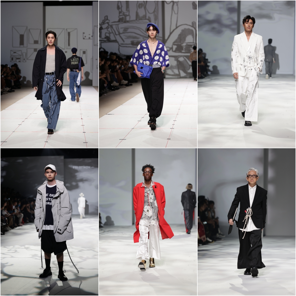 กับการอยู่บนโลกในปัจจุบันด้วยการมองไปสู่อนาคต” สร้างสรรค์เป็นเสื้อผ้าผู้ชายที่ผสมผสานทั้งความคลาสสิกและร่วมสมัย สะท้อนภาพปัจจุบันและอนาคตผ่านวัสดุ เทคนิค งานประดิษฐ์อันเป็นเอกลักษณ์ของแบรนด์ นอกจากนี้ ในส่วนของโชว์ก็นำเสนอเรื่องความหลากหลาย ที่ไม่มีเพียงหนุ่มฮ็อตอย่าง แจม-รชตะ หัมพานนท์ และ จิณณ์-จิณณะ นวรัตน์ ยังมีนายแบบนางแบบหลายเจเนอเรชั่น หลากคาแรกเตอร์ มานำเสนอความเท่และชิคแบบ Fri27Nov. ในสไตล์ของตัวเอง ไปจนถึงการร้อยเรียงเรื่องราวจากบรรยากาศฤดูฝนอันมืดครึ้มในเมืองใหญ่ด้วยโทนสีเข้มดำ ก่อนค่อย ๆ เผยความสดใสกับสีแดง-ขาว แล้วตบท้ายที่ความคึกคักสนุกสนานด้วยดีไซน์ล้ำ ๆ ผ่านเสื้อหนัง กลิตเตอร์ และความวับวาวของเสื้อผ้า และที่น่าสนใจคือ