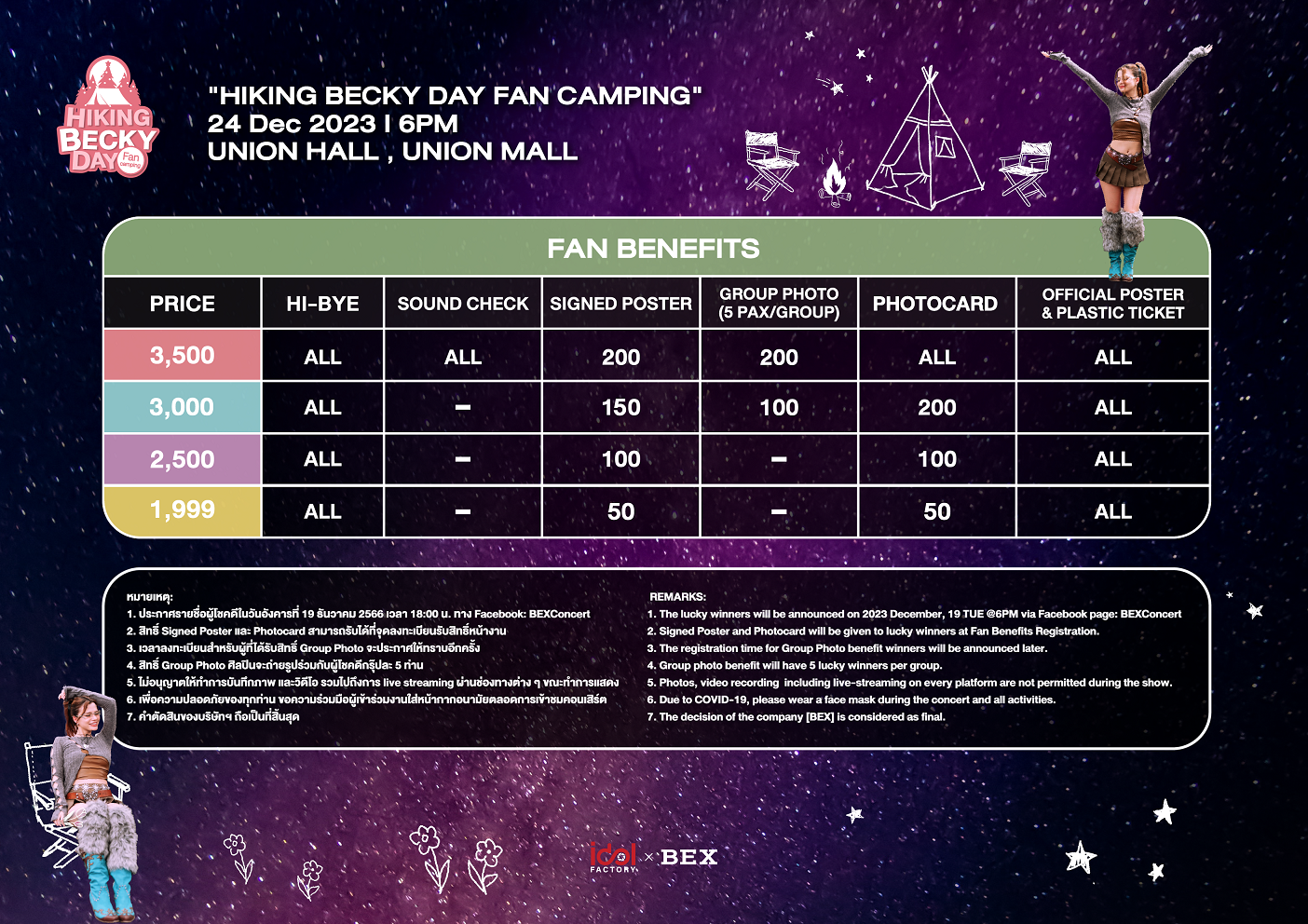 โดยงานสุดพิเศษในครั้งนี้เป็นการจับมือร่วมกันสร้างสรรค์งานของ “IDOLFACTORY” และ “BEX” บริษัทอีเว้นท์ออกาไนเซอร์ที่แฟน ๆ รู้จักกันเป็นอย่างดี รับประกันความปังได้เลย ทั้งแสง สี เสียง Production และเซอร์ไพรส์ที่เบ็คกี้เตรียมมาฝากแฟน ๆ ทุกคนโดยเฉพาะ!