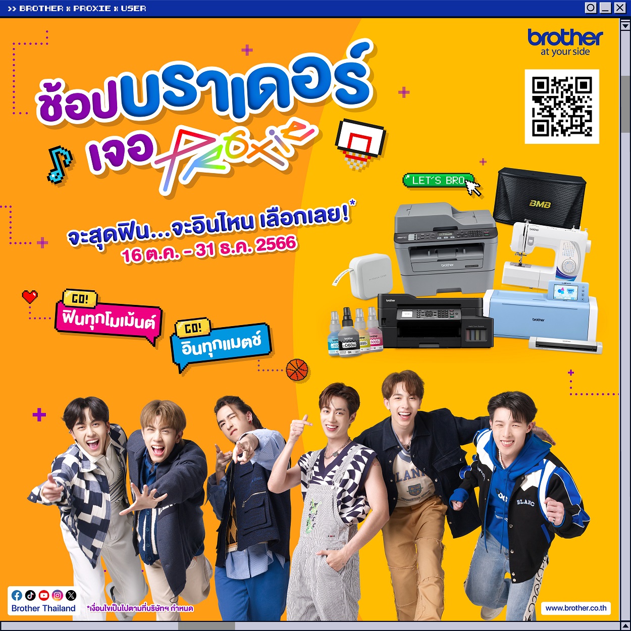 หลังจาก Brother (บราเดอร์) เปิดตัวโปรโมชั่น ช้อปบราเดอร์เจอ PROXIE ในแบบฉบับ “ไปให้สุดเวย์ Let’s Bro” เพียงช้อปฯ ครบตามเงื่อนไข วันนี้ ถึง 31 ธ.ค. 66 แล้วรับสิทธิ์ลุ้น กระทบไหล่ 6 หนุ่ม ศิลปินบอยกรุ๊ป PROXIE (พร็อกซี) แบรนด์พรีเซ็นเตอร์บราเดอร์ กับสองกิจกรรมสุดพิเศษ Exclusive Meet & Greet ณ True Digital Park วันที่ 28 ม.ค. 67 และ Big Sport Day ที่ Verso International School วันที่ 18 ก.พ. 67 และ เพียงเปิดตัวกิจกรรมไม่นาน ก็มีเสียงตอบรับ ท่วมท้น