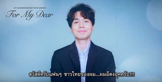 อีดงอุค (Lee Dong Wook) พระเอกหนุ่มสุดฮอตหลังจากเปิดเอเชียทัวร์แฟนมีทติ้งมาหลายประเทศก็ต่างได้รับกระแสตอบรับเป็นอย่างดีมาตลอด รวมทั้งประเทศไทยหลังจากเปิดขายบัตรก็ได้รับกระแสตอบรับจากแฟนๆ ชาวไทยเป็นอย่างดี งานนี้หนุ่มดงอุคจึงส่งตรงคลิปสุดพิเศษมาอ้อนแฟนๆ ชาวไทยของเขาพร้อมบอกตื่นเต้น และมีความสุขมาก ๆ ที่จะได้มาพบกับแฟนๆ ชาวไทยในงานแฟนมีทติ้งหลังจากไม่ได้กลับมากับแฟนๆ นานกว่า 9 ปี ใครที่เป็นแฟนตัวจริงของท่านยม หรือหนุ่มอีดงอุค ไม่ควรพลาดเด็ดขาด!!!