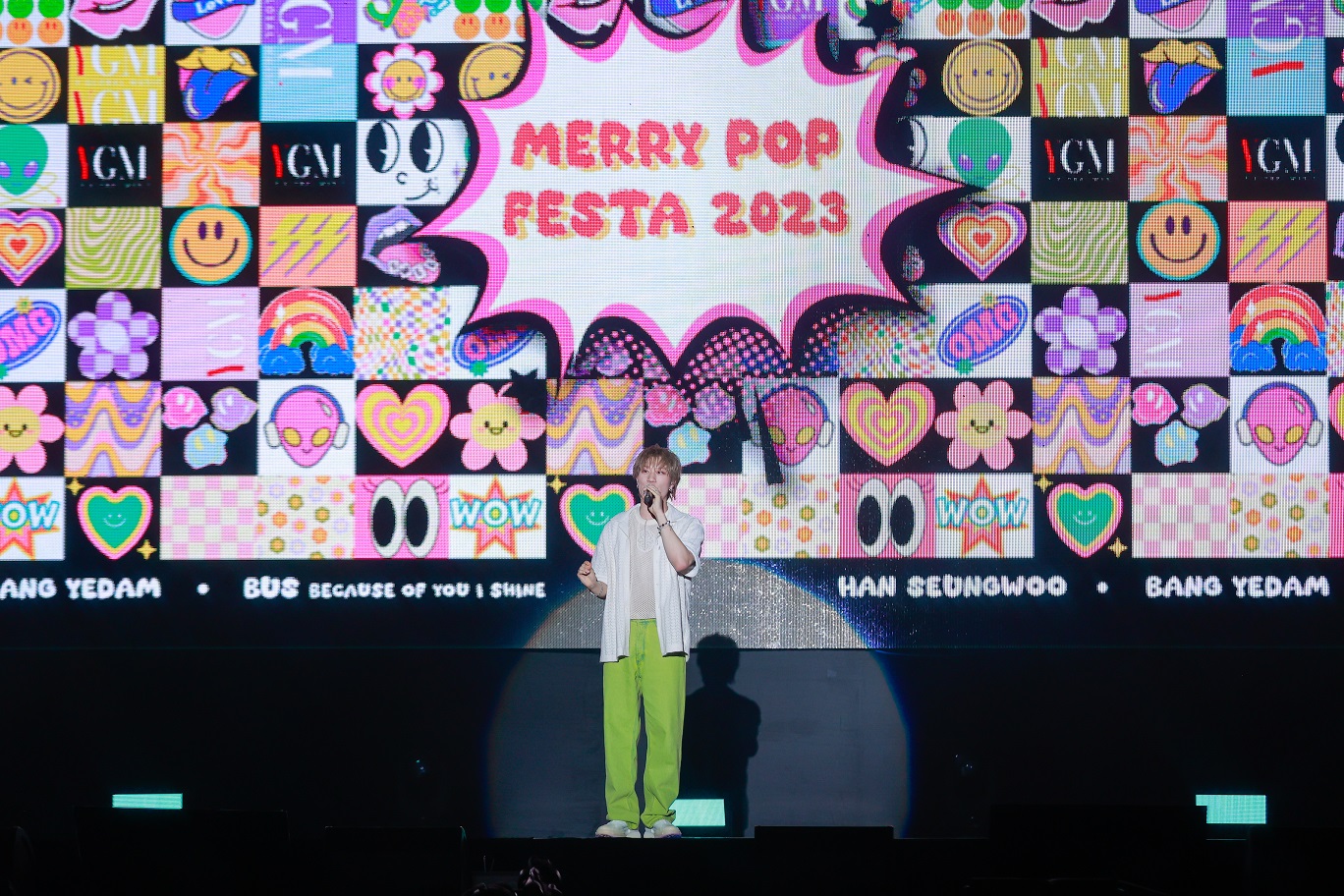 เปิดเวทีด้วยไอดอลนิวเจนฯฝั่งไทย 12 หนุ่มวง BUS (บัส) กับเพลง “LIMIT BREAK 987” พร้อมเสียงกรี๊ดต้อนรับลั่นธันเดอร์โดม แม้จะเพิ่งเดบิวต์แต่สเตจนี้พวกเขาเอาอยู่ ขนเพลงมาโชว์เพอร์ฟอร์มสุดเจ๋ง ร้อง เต้น แร็พ ทั้งเพลง ‘BLIND SPOT’ , ‘ROAD TRIP’ , ‘นี่นะคะ (I’m Here!) , ‘FORGET ME NOT’ และขาดไม่ได้กับเพลงเดวบิวต์อย่าง ‘Because of You, I shine’ ที่สาดความสดใส ความน่ารักขยี้ใจแฟนๆ ในฮอลล์ให้ฟินหนักมาก ตอกย้ำความฮอตศิลปินหน้าใหม่ที่มาแรงที่สุดในตอนนี้ และก่อนลงเวที หนุ่ม “จินอุค” ยังเป็นตัวแทนเจ้าบ้าน ส่งแมสเสจถึงศิลปินรุ่นพี่ “บังเยดัม” และ “ฮันซึง” ที่จะขึ้นเวทีถัดไปว่าขอให้ได้รับความสุขมากๆ กับงานในวันนี้