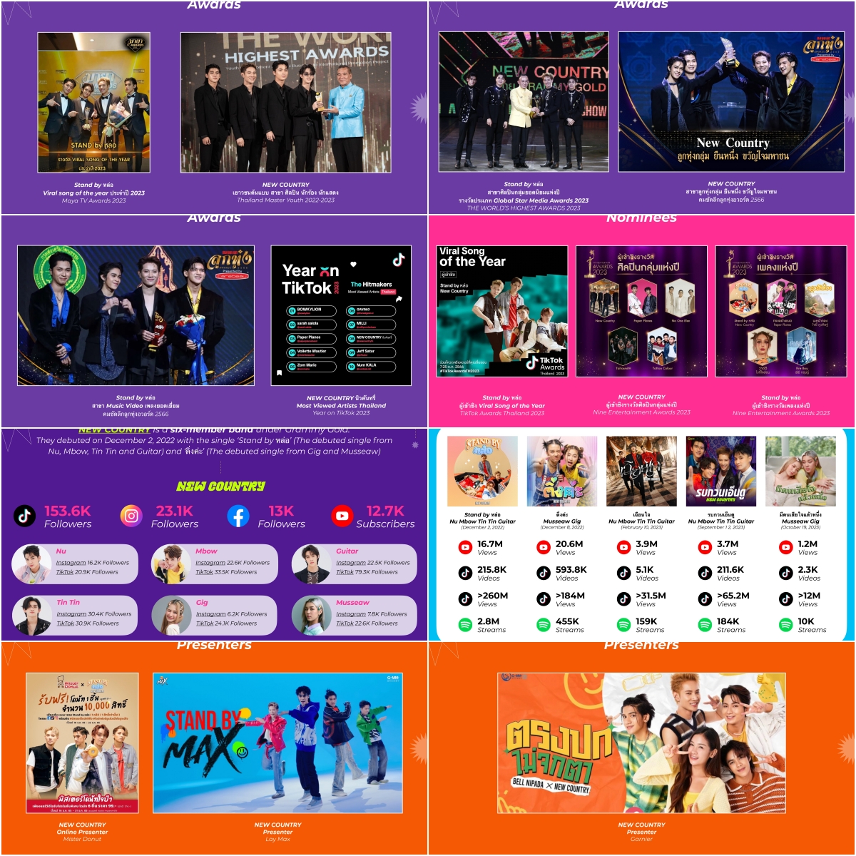 ก่อนหน้านี้เราเคยได้ยิน K-POP, J-POP และในประเทศไทยก็มี T-POP แต่น้อง ๆ วง NEW COUNTRY ทำให้คำจำกัดความนี้แตกแขนงแยกย่อยไปอีก นั่นคือ T-POP ที่ดึงเอกลักษณ์เพลงไทย Local แบบดั้งเดิมผสมเข้ากับกระแสเพลง POP สมัยใหม่ ถ้าจะนิยามแนวเพลงนี้ให้เห็นภาพชัด ๆ ก็คือ “COUNTRY POP” หรือ “ลูกทุ่งป๊อป” ที่ความเป็นลูกทุ่งจะอยู่ในท่วงทำนอง การขับร้องที่แทรกลูกคอ และสำเนียง ส่วนความเป็น POP สากลจะอยู่ในแง่ของดนตรีที่ร่วมสมัย เสื้อผ้า โชว์ ภาษาที่ใช้ทั้งภาษาไทย และภาษาอังกฤษแบบง่าย ๆ ทำให้ร้องตามได้ และที่สำคัญคือท่าเต้นที่สามารถเต้นตามได้ง่ายจึงทำให้เป็นกระแสใน TikTok เป็นอย่างมาก โดยทั้ง 2 เพลง STAND BY หล่อ และ ติ่งค่ะ เนื้อร้อง ทำนองเพลงแต่งโดย ก๊อท จักรพันธ์