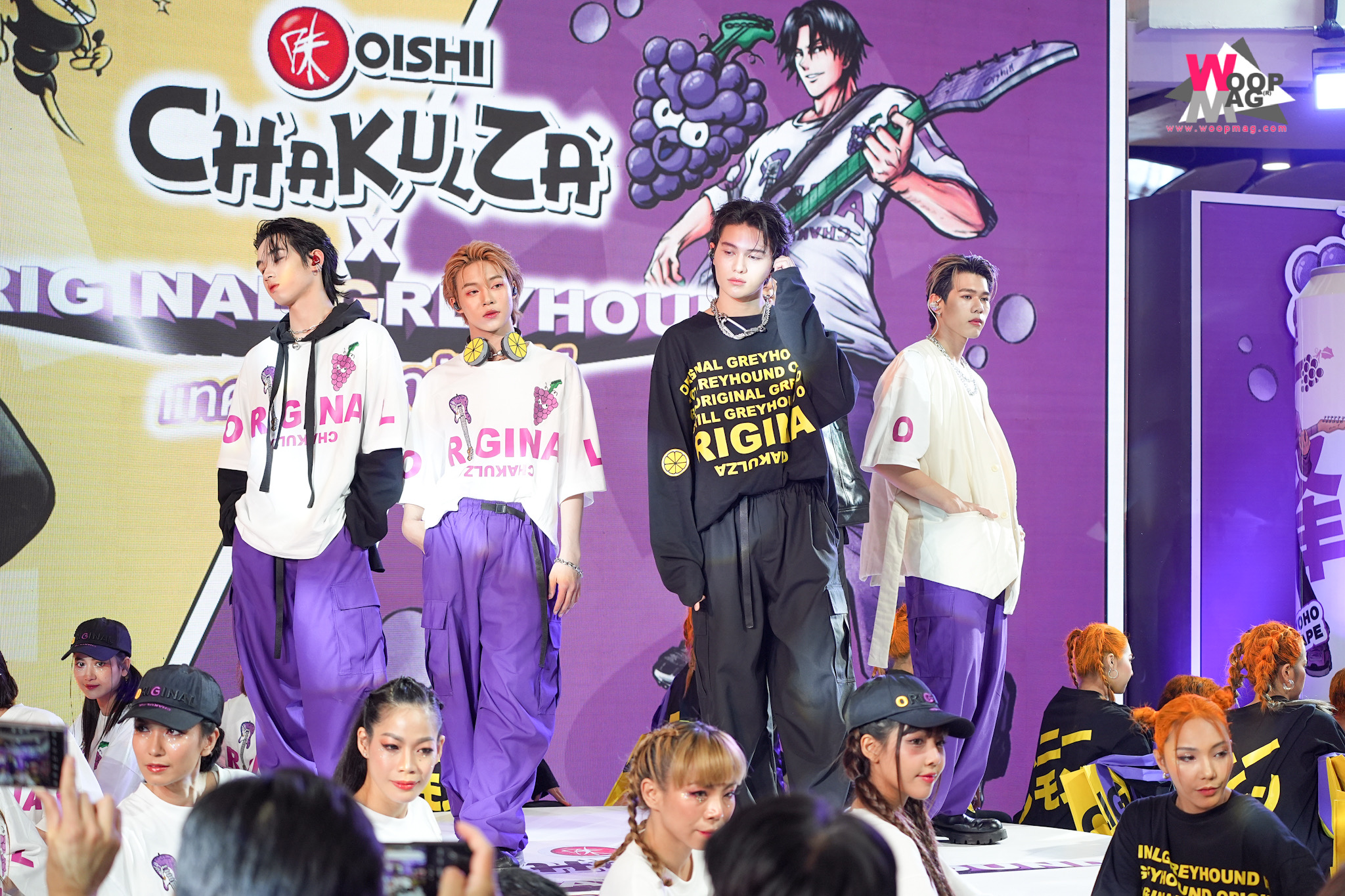 สำหรับงานเปิดตัวคอลเลกชันพิเศษนี้ ทั้งปังทั้งฉ่ำแบบที่โลกต้องจดจำ เมื่อ โออิชิ ชาคูลล์ซ่า แทคทีม ออริจินัล เกรฮาวด์ เปิดรันเวย์ใจกลางเมือง เนรมิตพื้นที่บริเวณลานเซ็นทรัล คอร์ท ศูนย์การค้าเซ็นทรัล เวิลด์ ให้เป็นรันเวย์สุดอลังการสำหรับแฟชั่นโชว์ สไตล์ Mega Crew จากกองทัพนายแบบ-นางแบบ จัดเต็มด้วยลุคเท่แบบฉบับเกรฮาวด์ และแฝงความซ่า..มีดีย์ตามสไตล์ของ โออิชิ ชาคูลล์ซ่า สะกดทุกสายตาอยู่หมัด โดยมีคนดังจากวงการบันเทิง วงการแฟชั่น และเซเลบฯ มาจอยกันแน่นฟรอนต์โรว์ และอัปเวลความสนุกซ่าไร้ขีดจำกัด ด้วยมินิคอนเสิร์ตจากบอยกรุ๊ปแห่งยุค “ไลแคน” มาสร้าง VIBE ให้ทุกคนจอยกันแบบสุดมันส์ นอกจากนั้นยังมีกิจกรรมออนกราวด์มากมายเอาใจเหล่าเจนซ่าที่มาในงาน อาทิ โซนถ่ายภาพชิค ๆ พร้อมร่วมลุ้นรางวัลพิเศษ, โซนจำหน่ายสินค้าคอลเลกชั่น “โออิชิ ชาคูลล์ซ่า x ออริจินัล เกรฮาวด์” และยังสามารถชิมเครื่องดื่มโออิชิ ชาคูลล์ซ่า แบบฉ่ำ ๆ ได้ตลอดทั้งงาน